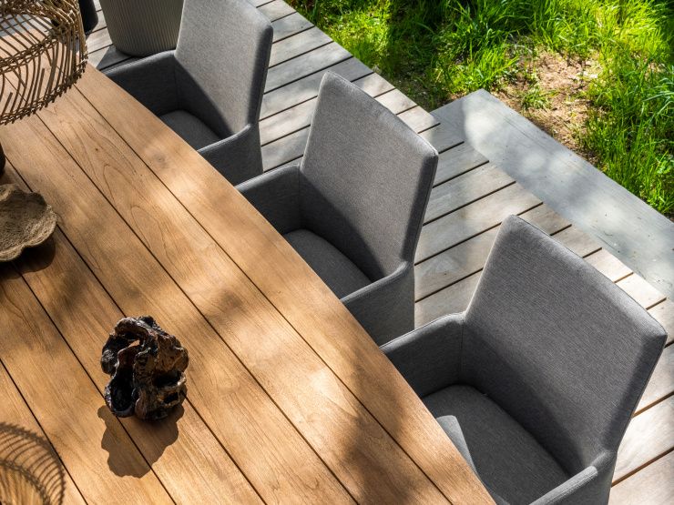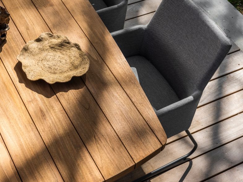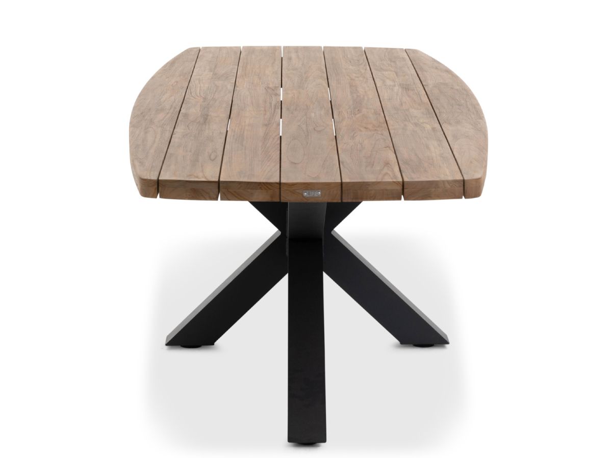 Elegantný a robustný záhradný jedálenský stôl Timor Oval Teak bude dominantou každej terasy či záhradnej pergoly. Konštrukcia stola je hliníková striekaná práškovou antarcitovou farbou. Stolová doska je z robustného prémiového teaková dreva. Pri jeho veľkosti pri ňom pohodlne usadíte celú rodinu a vychutnáte si obed či večeru.