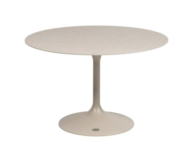 Stôl Verona je majstrovským dielom moderného dizajnu, ktorý stavil na organické tvary a jemnú farebnú paletu. Dominantným prvkom je elegantná centrálna noha, ktorá nielenže poskytuje maximálnu stabilitu, ale zároveň uvoľňuje priestor pre nohy všetkých sediacich. Stolová doska z materiálu Sinterstone v odtieni Ivory zaujme svojou jemnou textúrou, ktorá je príjemná na dotyk a vizuálne pripomína ušľachtilý prírodný kameň. Tento stôl premení každé stolovanie na výnimočný estetický zážitok, či už v interiéri, alebo na krytej terase.