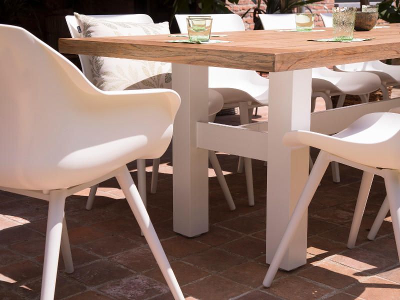Nádherný záhradný teakový stôl s hliníkovými nohami Yasmani Vás očarí svojou eleganciou a unikátym dizajnom. Na jeho výrobu bolo použité teakové drevo najvyššej kvality, ktorý elegantne doplňujú hliníkové nohy. Pri tomto type záhradného stola vyniknú rôzne typy záhradných kresiel a stoličiek od ratanových, moderných plastových až po hliníkové stoličky s doplňkami teakového dreva. Stôl je dostupný v dvoch farebných prevedeniach konšturkcie a to bielej a čiernej.