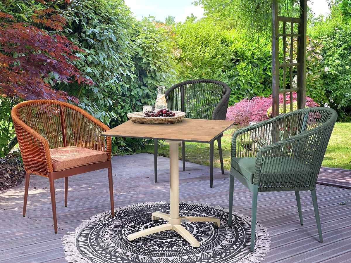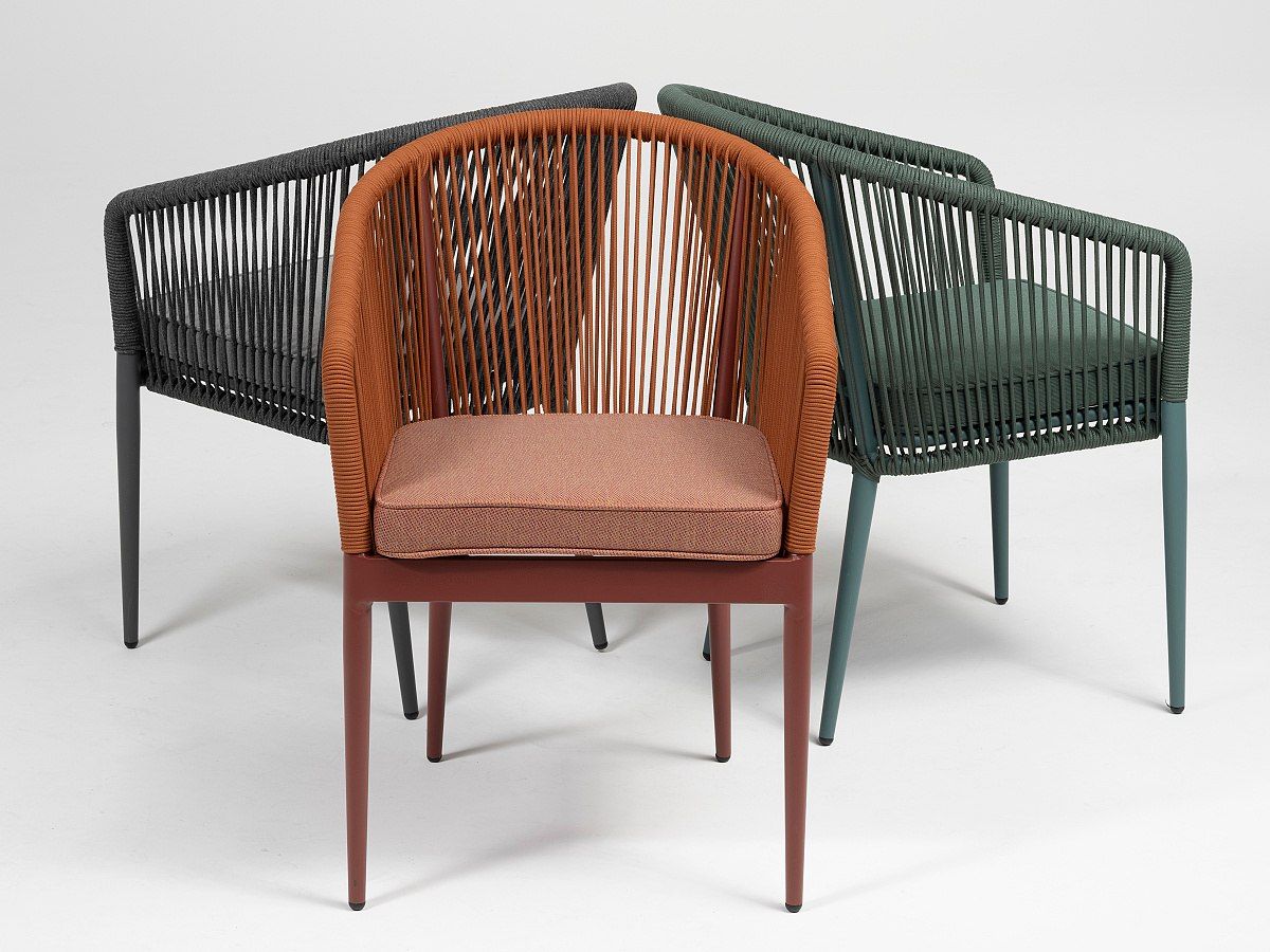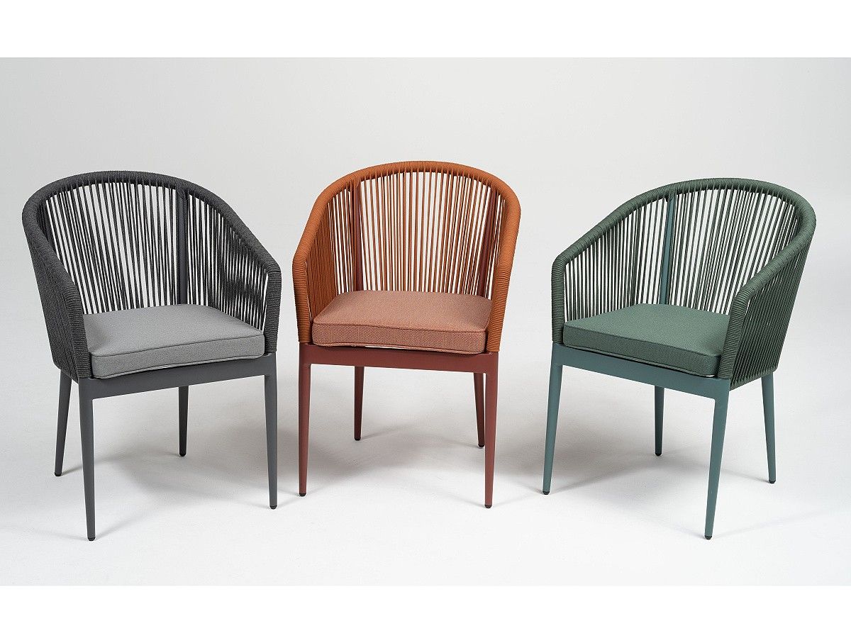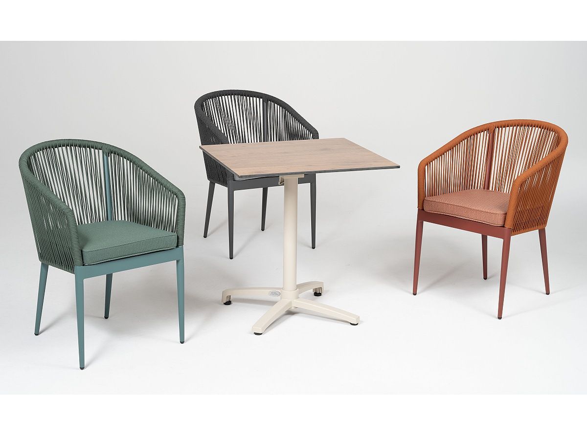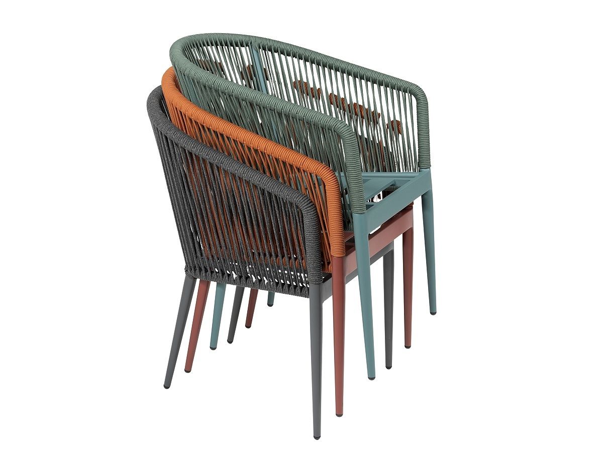 Moderná záhradná stolička Amigo je ideálnym riešením pre moderné kaviarne a bary. Originalitu predstavuje hlavne syntetická tkanina, ktorá je ovinutá okolo hliníkovej konštrukcie, ktorá je striekaná antracitovou práškovou farbou. Vďaka modernému dizajnu dodá punc dokonalosti každej terase. Podsedák je zo 100% polyesterovej látky. Stolička je dostupná v 3 farebných prevedeniach, ktoré môžete vidieť v priložených obrázkov v galérii.