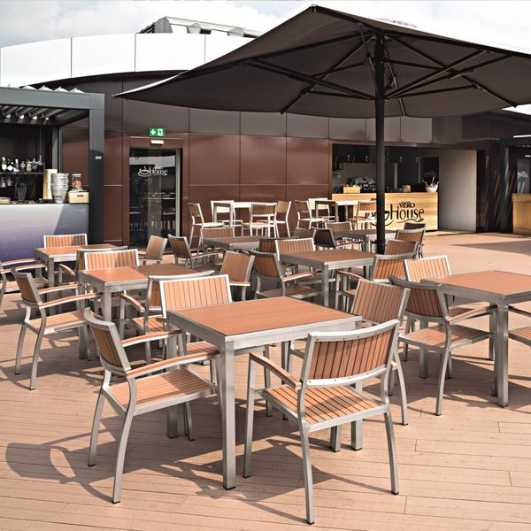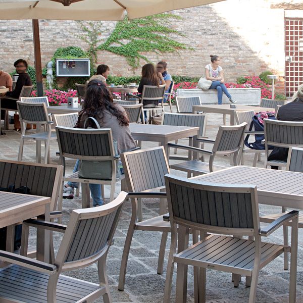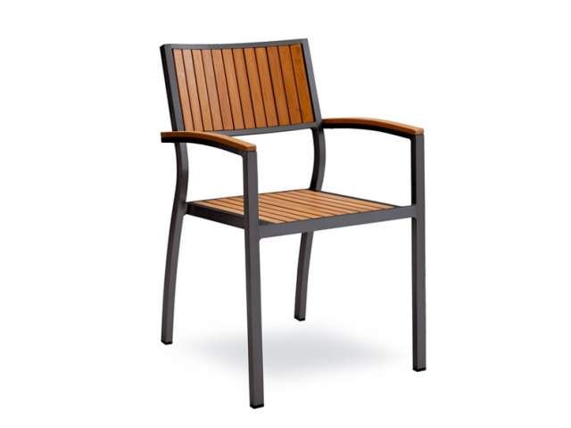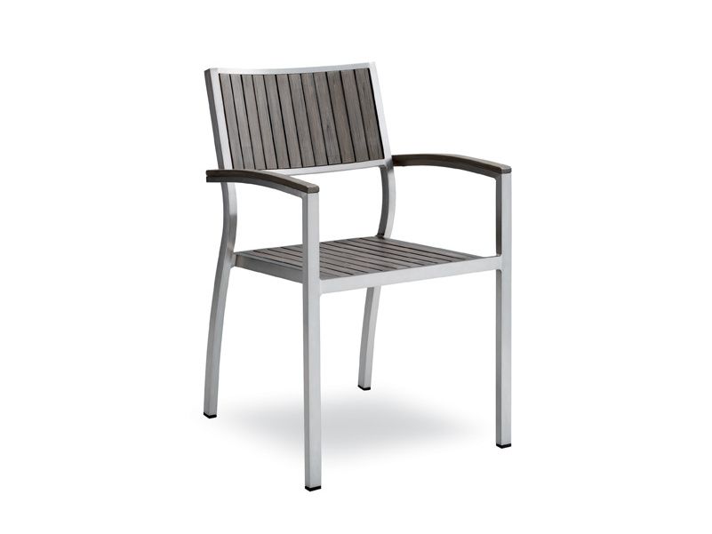 Odolná záhradná stolička Bavaria Grey je ideálnou voľbou ako terasová stolička pre hotely a reštaurácie. Rám stoličky je z bruseneho hliníku, ktorý dodáva stoličke ako keby saténový vzhľad. Sedacia časť, chrbtová časť aj opierky sú z polywoodu - inovatívny plastový material, ktorý je takmer bezúdržbový, ľahko sa čistí a má dlhú životnosť. Tento typ stoličky je ideálny pre gastro zariadenia. Stolička je dostupná v 3 prevedeniach Bavaria Armchair Black, Bavaria Armchair Grey a Bavaria Armchair Teak Look.