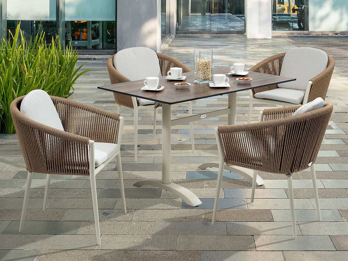 Nádherná a veľmi pohodlná záhradná stolička Coconut je ideálnou voľbou do reštaurácií či kaviarní, ale určite Vám spraví radosť aj u Vás na terase ako ideálna voľba k stolovej súprave. Stolička ma hliníkový rám a je ovinutá PVC lanom v krásnom dizajne. Podsedák aj opierkový vankúš sú odolné voči poveternostným vplyvom. Stolička je stohovateľná. Pre viac informácií nás neváhajte kontaktovať.
