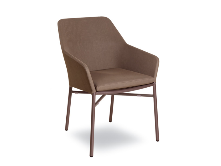 Krásna a elegantná záhradná stolička Giselle je typickým predstaviteľom talianskeho citu pre dizajn. Konštrukcia stoličky je z pevného hliníku, ktorý je potiahnutý PVC textílou, takže je stolička vhodná do akéhokoľvek počasia. Podsedák je zo 100% polyesterovej tkaniny s rýchloschnúcou penou. Stolička je stohovateľná, takže je vhodná do moderných kaviarní, na terasy reštaurácií či hotelov. Stolička Giselle je dostupná v dvoch farebných prevedeniach a to v hnedej a čiernej.