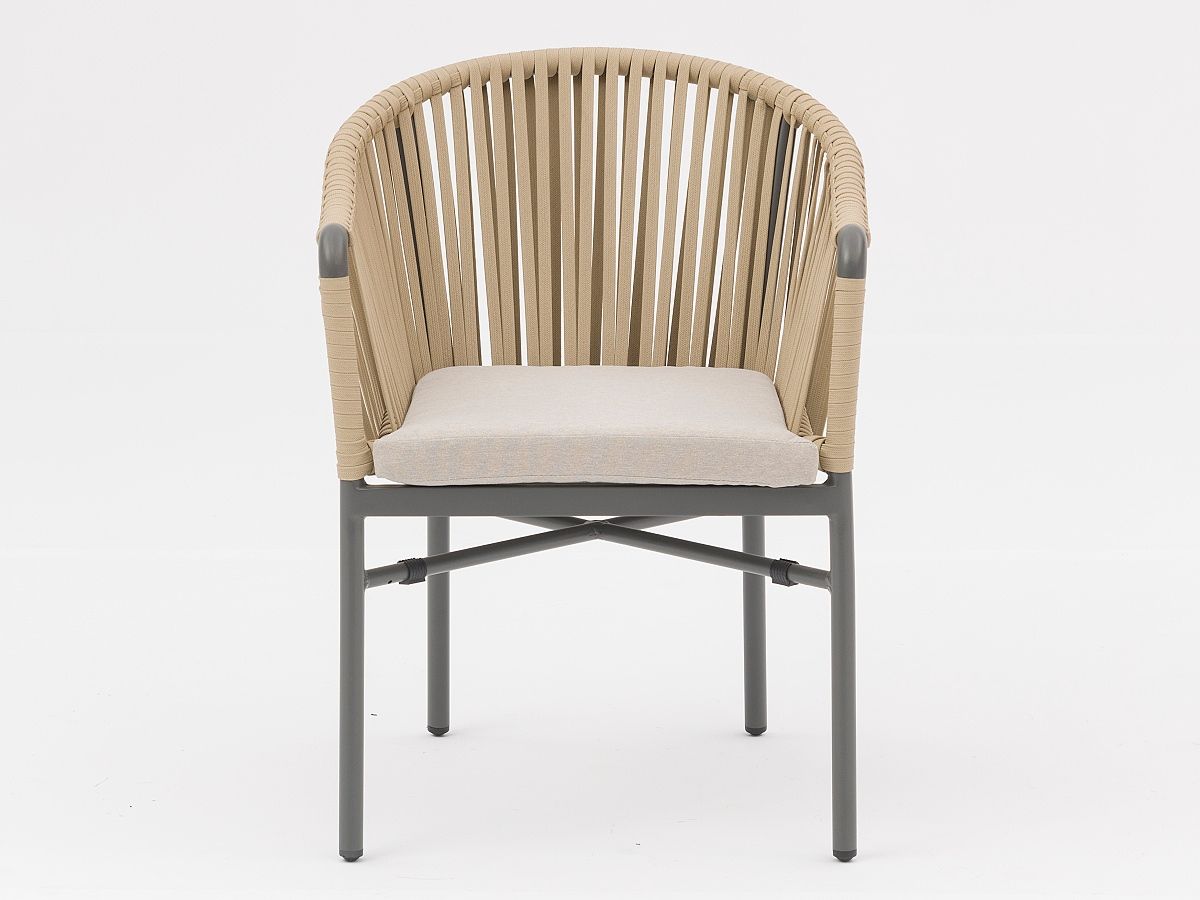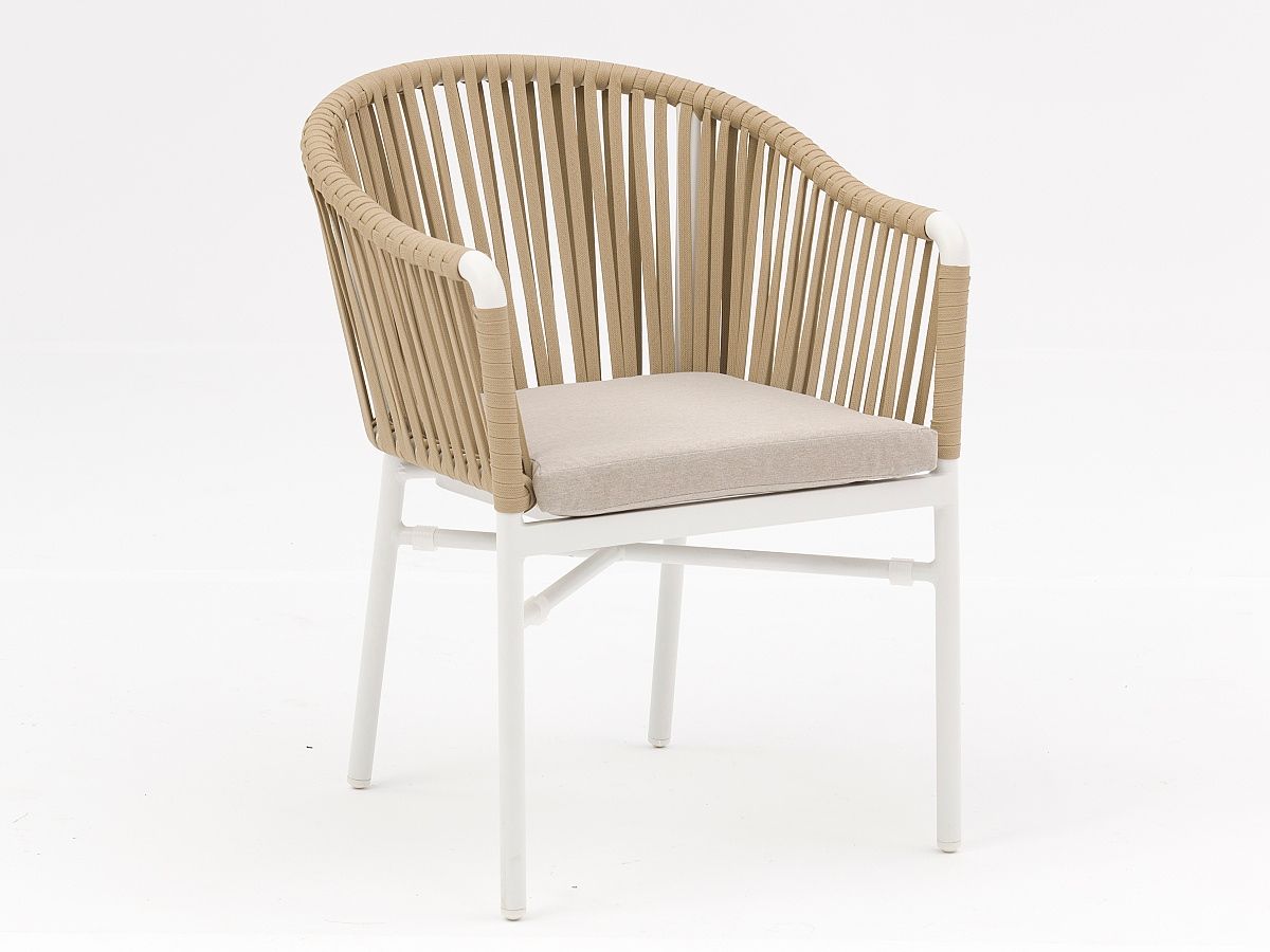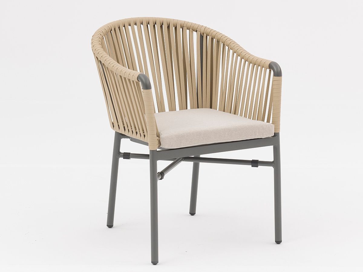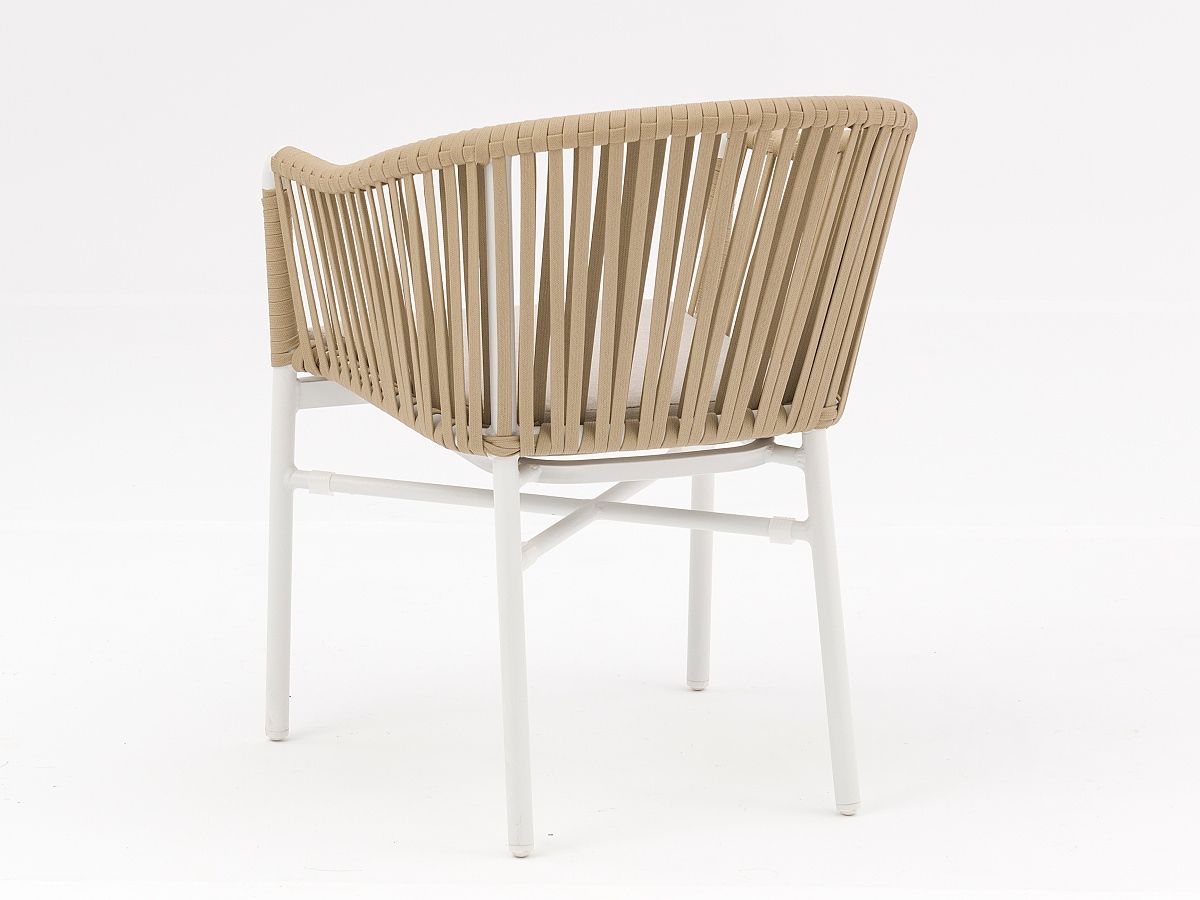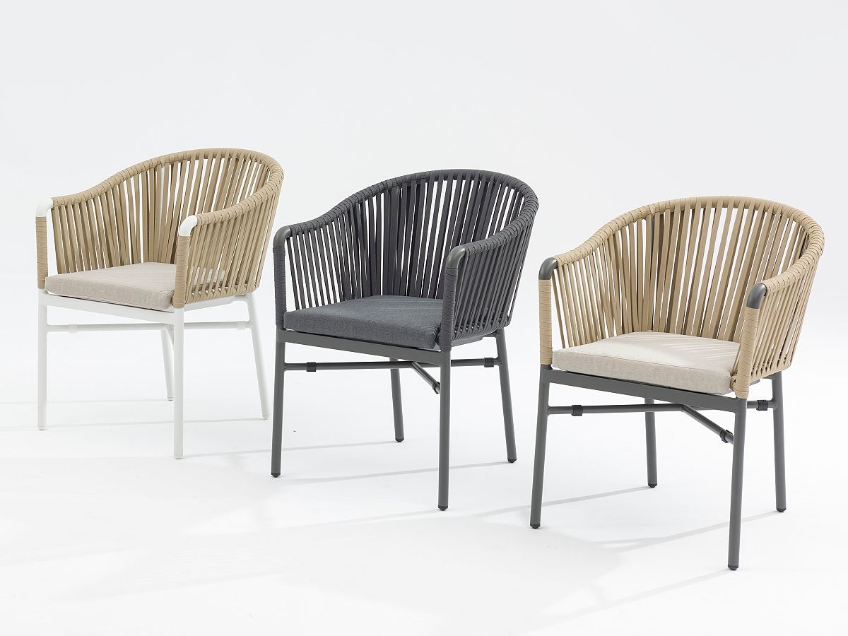Krásna a elegantná záhradná stolička Jacky je typickým predstaviteľom moderného typu záhradnej stoličky. Originalitu predstavuje hlavne nádherne ručne prepletané syntetické lano, ktoré je ovinuté okolo hliníkovej konštrukcie, ktorá je striekaná práškovou farbou v antracitovej alebo bielej farbe. Stolička Jacky je dostupná v 3 farebných prevedeniach, ktoré môžete vidieť v priložených obrázkoch v galérii.