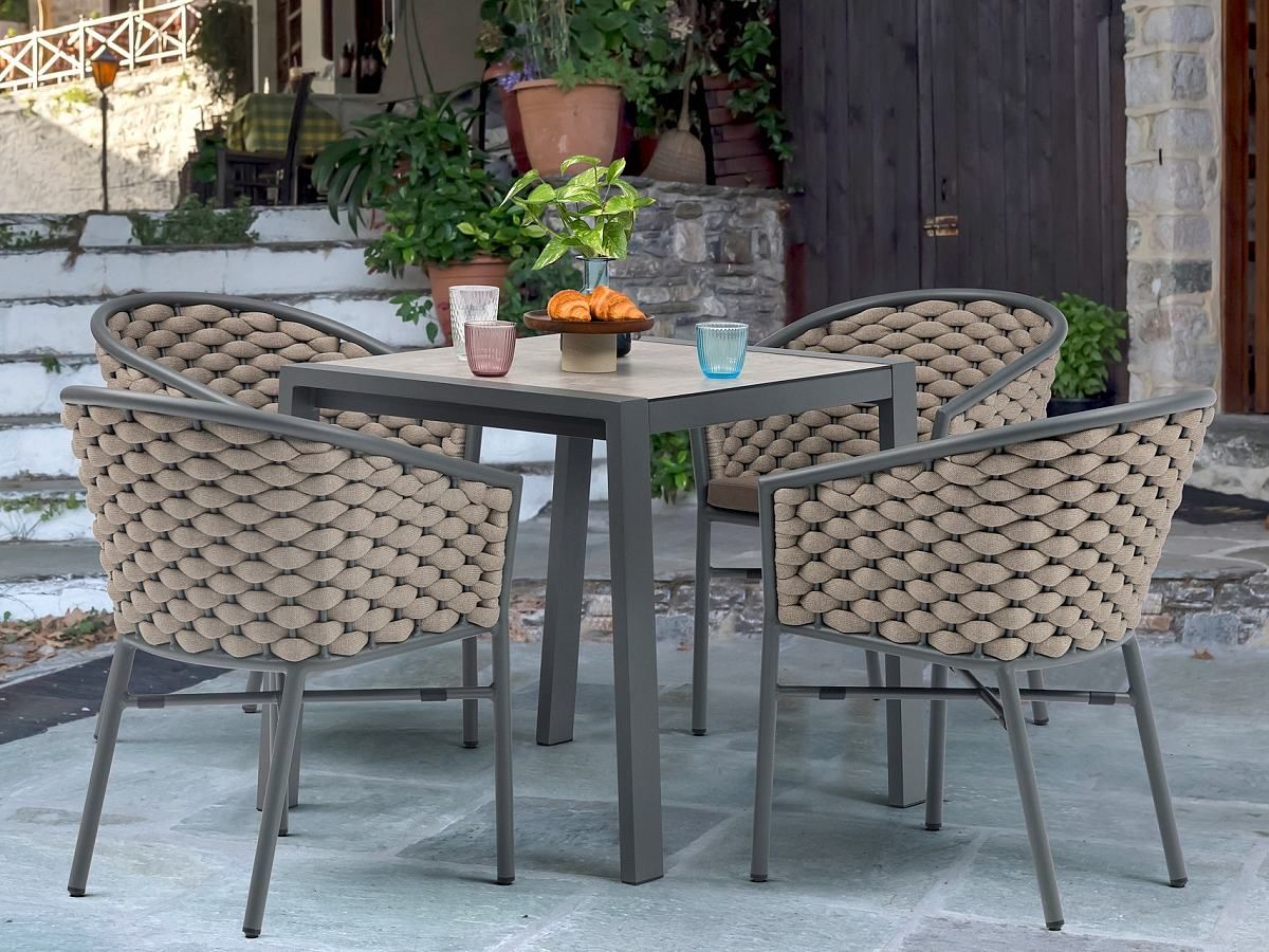 Stolička Kreta v sebe spája modernú čistotu hliníkového rámu s prirodzeným vzhľadom melírovaných textilných šnúr, čím vytvára v exteriéri veľmi vkusný a útulný akcent. Vďaka použitým prémiovým materiálom a výplni Quick Dry Foam je stolička nielen esteticky pôsobivá, ale aj mimoriadne praktická – vankúše schnú veľmi rýchlo, čo výrazne zvyšuje komfort používania aj po letnej prehánke. Vďaka svojej stohovateľnosti je skvelým riešením pre terasy a priestory, kde je flexibilita a rýchla manipulácia s nábytkom prioritou.