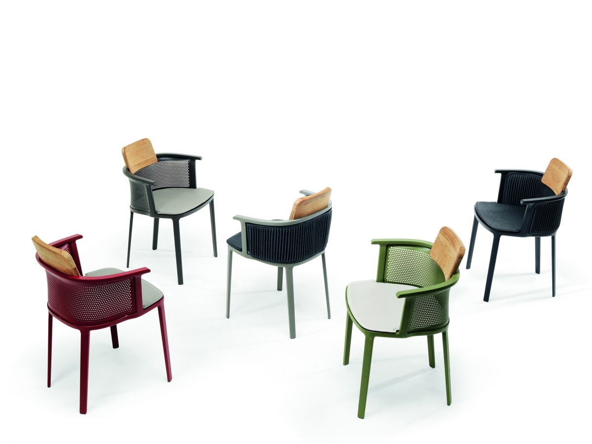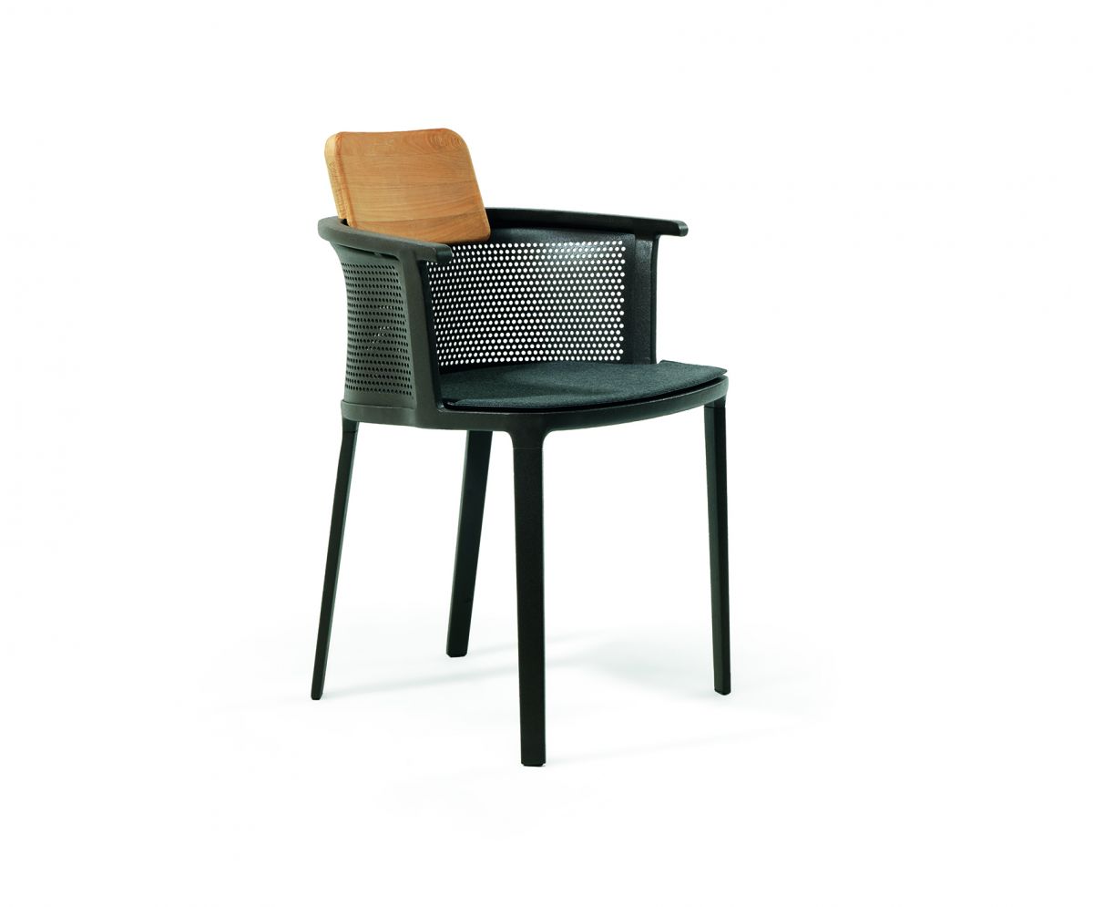 Nádherná a elegantá stolička Nicolette je odrazom talianskeho dizajnu a citu pre detail. Konštrukcia stoličky je z liateho hliníku a je dostupná vo viacerých farebných variantách. Teakové operadlo je krásnym detailom, ktorý len zvýrazňuje dokonalosť tejto stoličky. V rovnakom prevedení sú aj barové stoličky. Stolička Nicolette je vhodná do exteriéru ale krásne vynikne aj v interiéry. Stolička je stohovatelná, takže je aj ideálnou voľbou pre luxusné kaviarne či reštaurácie.