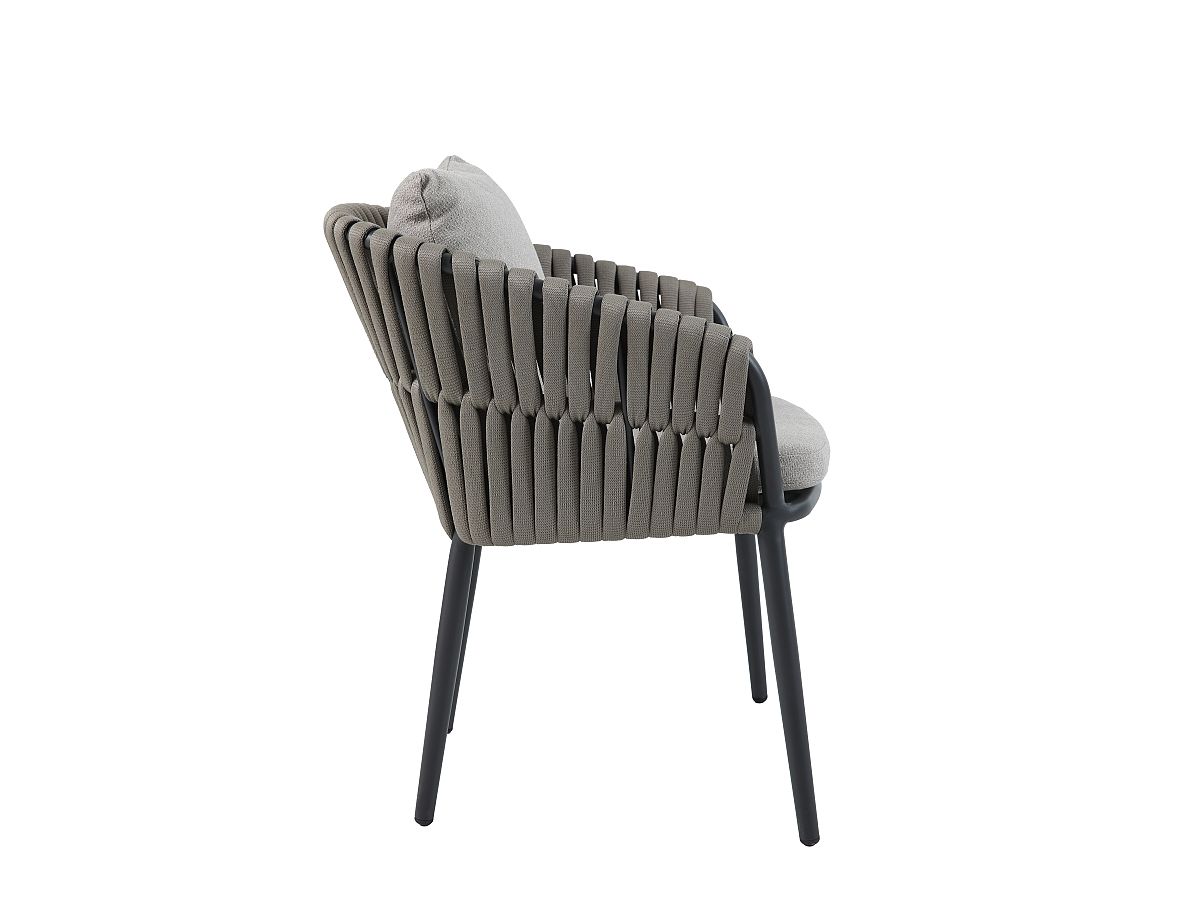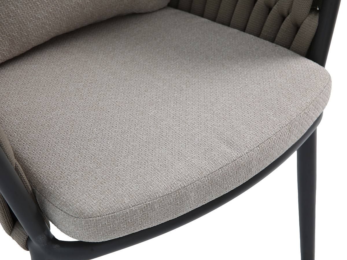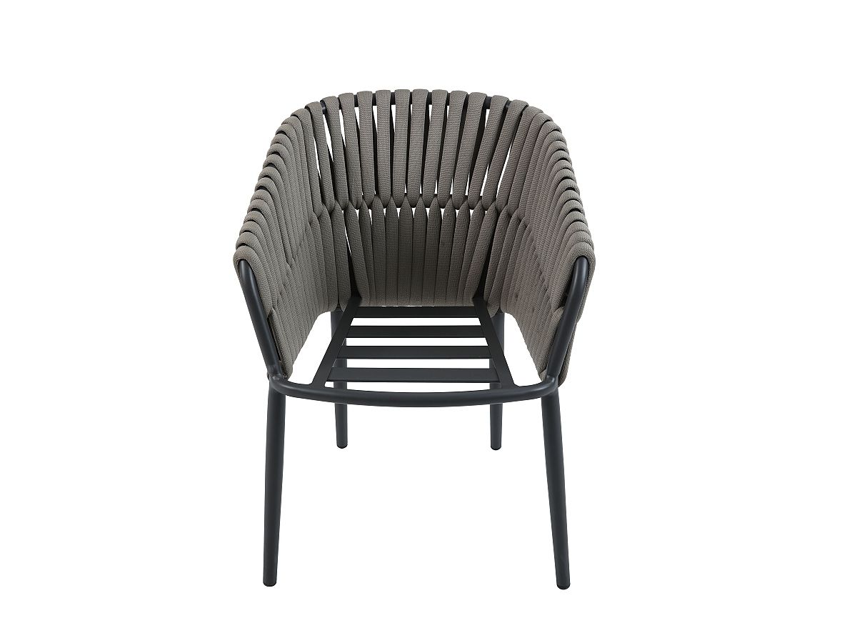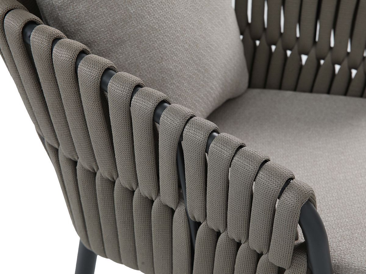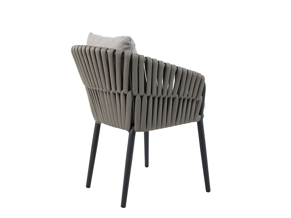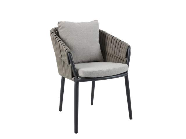 Stolička Nizza prináša do exteriéru hrejivú atmosféru vďaka unikátnemu výpletu z hrubých textilných šnúr v odtieni taupe. Je ideálnou voľbou pre terasy, ktoré hľadajú rovnováhu medzi moderným priemyselným vzhľadom hliníka a prírodným charakterom textilných materiálov.