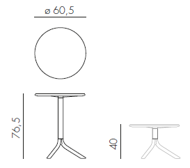 Stolík Spritz je vyrobený z tvrdeného plastu spevneného sklenným vláknom. Povrch stola Spritz je úplne hladký a tým sa líši od stolíka Step. Má dve možnosti výškového nastavenia. Pri nízkej variante je stolík vysoký 40 cm a je vhodný ako príručný stolík k lehátkam Alfa, Omega a Atlantico. Pri vysokej variante má výšku 76,5 cm a pri tejto verzii je vhodný aj ako stolík k stoličkám na balkóny a terasy. Stolová doska má priemer 60,5 cm. Stolík je dostupný v 7 farebných prevedeniach.