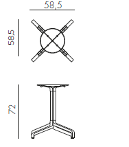 Hliníková stolová podnož s fixnou hornou časťou na uchytenie stolovej dosky. Stolová podnož sa vyrába v 4 farebných prevedeniach a je vhodná pre stolové dosky vo veľkostiach 80 x 80 cm, 90 x 90 cm a kruhové s priemerom 80 cm a 90 cm. Vhodná do bistier, kaviarní, ale aj jedální a foodcourtov.
