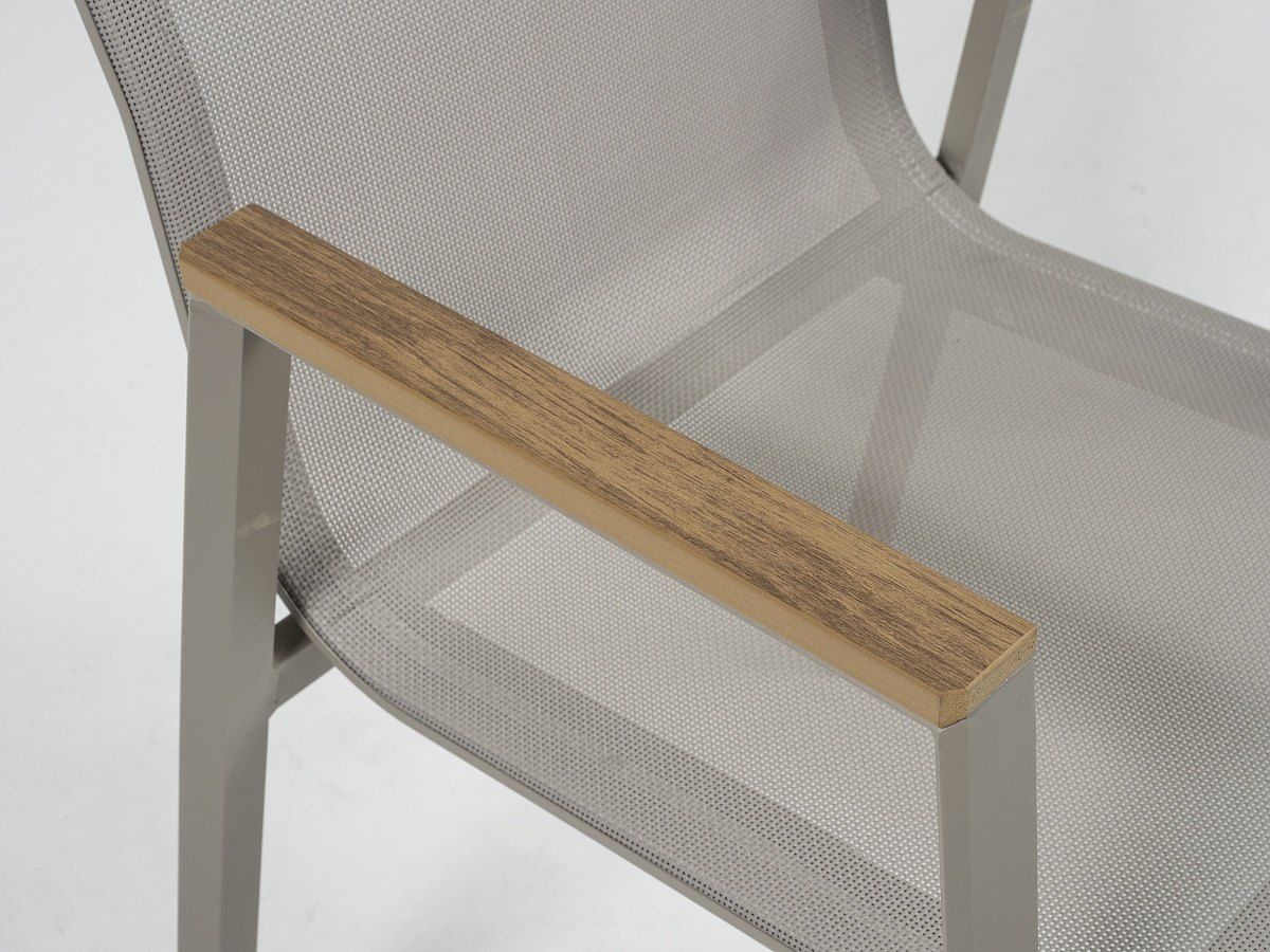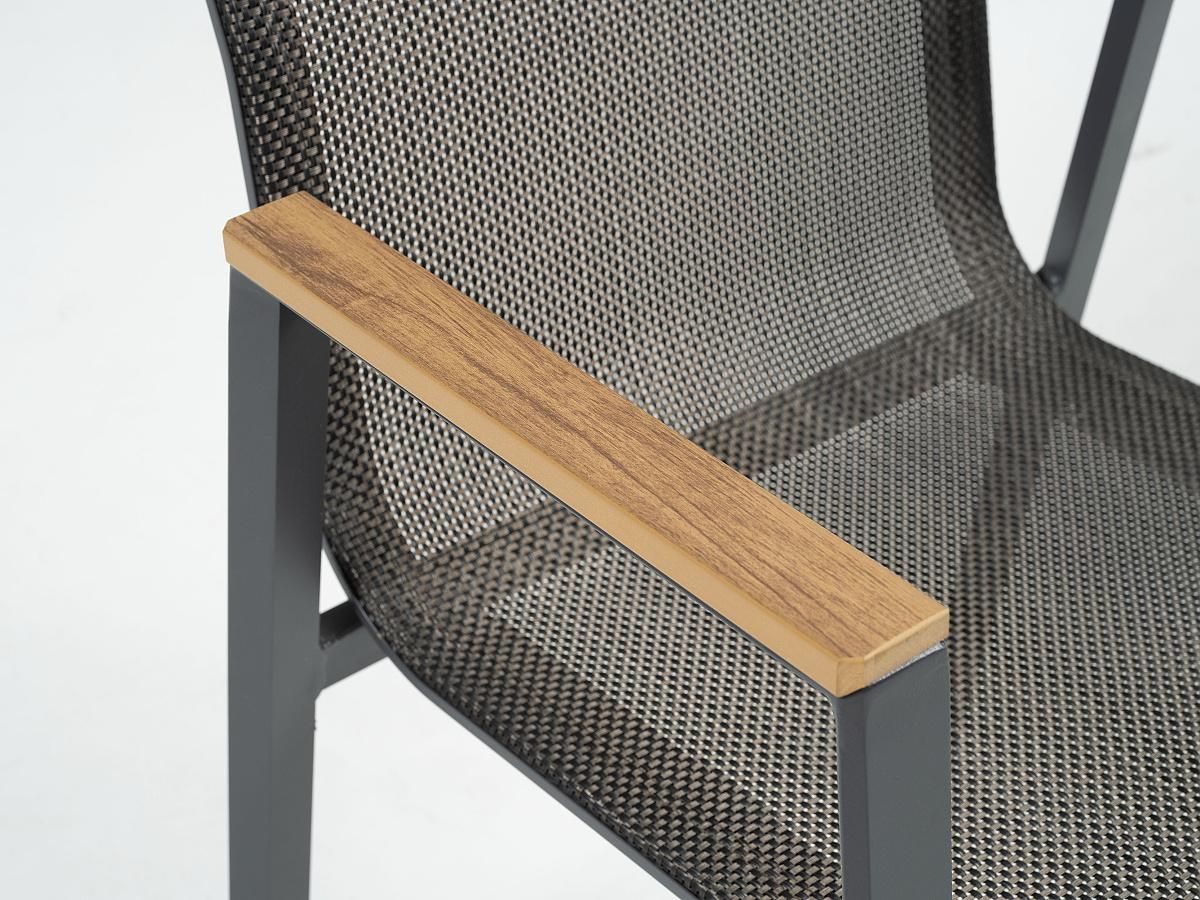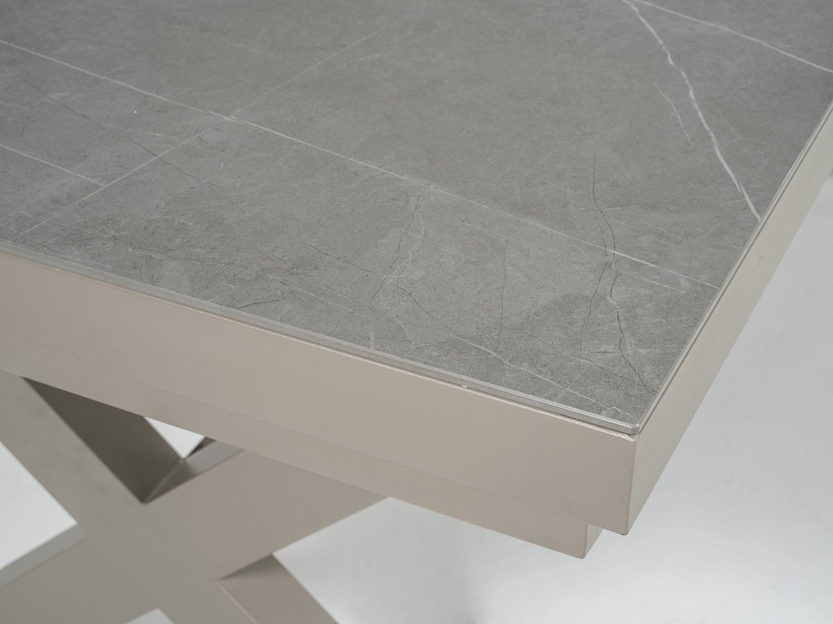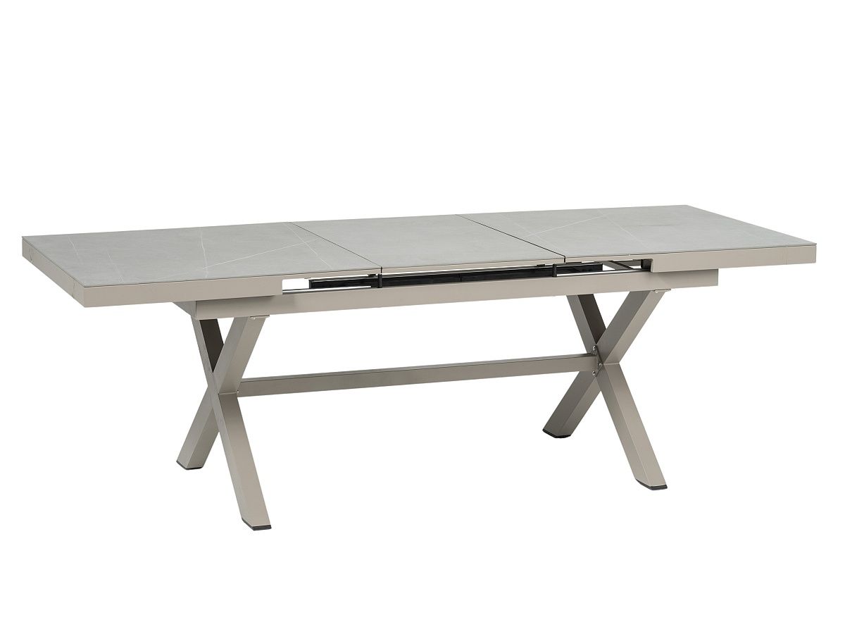 Elegantná a veľmi praktická jedálenská stolová súprava Comodo je ideálnou voľbou pre tých, ktorý sa nechcú moc starať o svoj záhradný nábytok. Stôl má hliníkový rám v champagne alebo antracitovej farbe a stolová doska je z vysoko odolného materiálu sinterstone. Pri prevedení s rámom champagne je stolová doska v svetlosivom mramorovom vzhľade. Pri prevedení s antracitovým rámom je stolová doska v čiernom mramorovom vzhľade. Stôl sa dá jednoducho roztiahnuť pomocou synchrónného automatického vysúvania. Stoličky majú hliníkový rám v rovnakom farebnom prevedení ako stoly - champagne alebo antracit. Stoličky sú potiahnuté pevným rýchloschnúcim textilénom. Opierky na stoličkách majú polywoodové latovanie v imitácii teakového dreva. Obe prevedenie môžete vidieť v priložených obrázkoch v galérii.