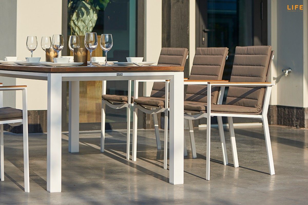1x stôl Concept 210 white s teakovou stolovou doskou