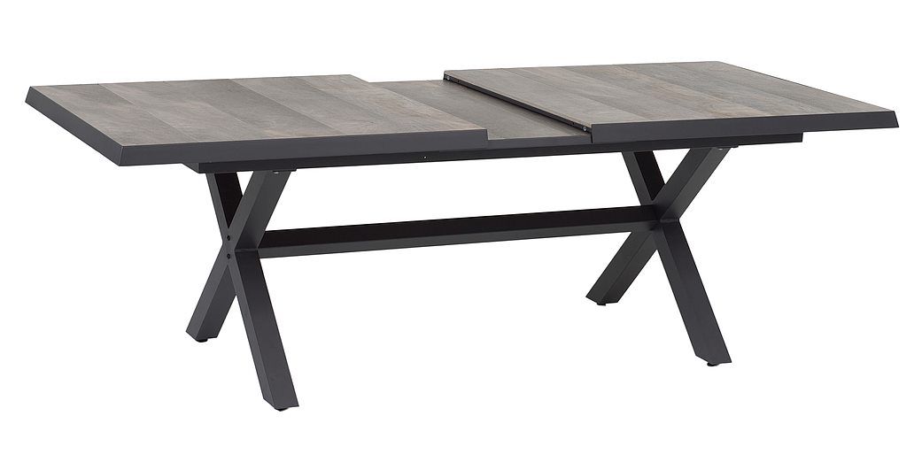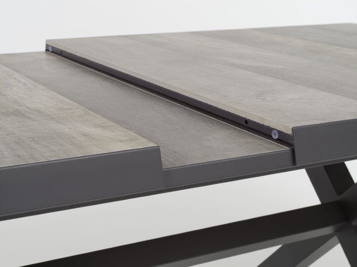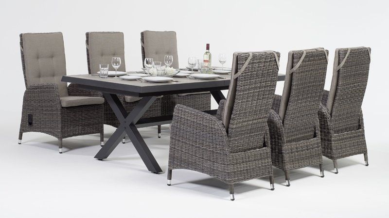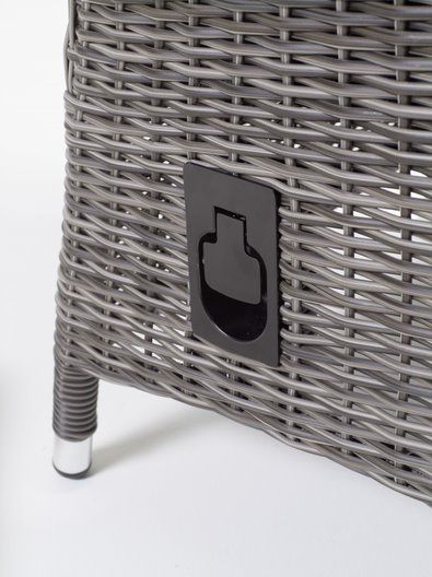 Moderná záhradná stolová súprava Kingston bude pútačom pozornosti na každej terase. Rozkladací systém stola je veľmi jednoduchý, stačí z jednej strany stôl potianuť k sebe a stôl ľahko roztiahnete a nepotrebujete k tomu dalšiu osobu na pomoc. Konštrukcia stola je hliníková, ktorú dopĺňa keramická stolová doska, vďaka ktorej je stôl takmer bezúdržbový. Konštrukcia kresla je hliníková a je ovinutá polookrúhlym ratanom v melírovej sivej farbe. Polohovanie je pomocou páčky na pravej strane kresla. Jednoduchým pohybom si kreslo nastavíte tak, ako Vám to vyhovuje. Vďaka vysokej opierke je kreslo dostatočne pohodlné aj pre vysokých ľudí.