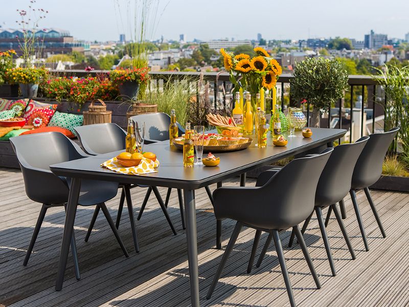 Moderná a elegantná záhradná stolová súprava Sophie Studio bude pútačom pozornosti na každej terase. Stôl má hliníkový rám a HPL stolovú dosku. Stoličky majú hliníkové nohy a telo stoličky je z vyrobené z vysoko kvalitného plastu, tzv. resinu. Stoličky sú dostupné v 2 farebných kombináciach. Nemusíte sa báť farby kombinovať, celý priestor sa tak krásne rozjasní. Stolička má nosnosť 120 kg.