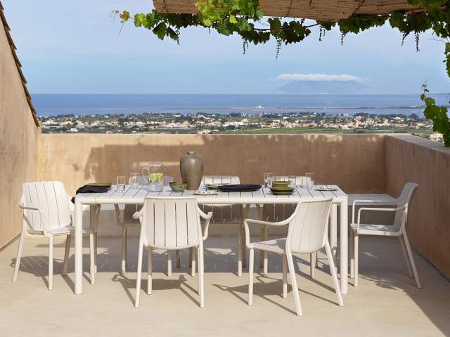 Moderná záhradná stolová súprava Tevere Tiberina je vyrobená z prvotriednych materiálov. Konštrukcia stola Tevere je z hliníka, ktorý je striekaný matnou práškovou farbou. Stolová doska je z tvrdeného plastu (polypropylén s prímesou laminátu a UV aditívami). Stôl má možnosť rozťahovania. Za pár sekúnd roztiahnete stôl z pôvodných 211 cm na 275 cm, takže ho dokonale využijete pri rodinných oslavách. Môžete si vybrať z 4 farebných prevedení. Stolička Tiberina je vyrobená z tvrdeného plastu spevneného sklenným vláknom. Je dostupná v 4 farebných prevedeniach, takže sa nemusíte báť experimentovať a do jednoho priestoru použiť viac farieb.