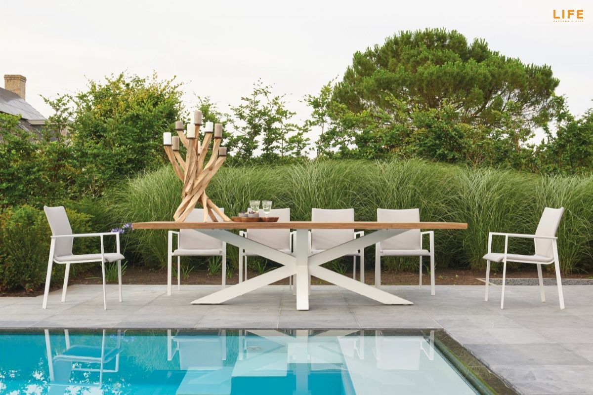 1x stôl Timor 230 white s teakovou stolovou doskou